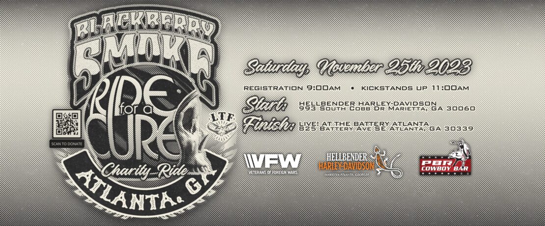 We are happy to announce that Blackberry Smoke, The Lana Turner Foundation, The VFW, and Hellbender Harley-Davidson will also be hosting the 2023 Blackberry Smoke Ride for a CURE on Saturday November 25!